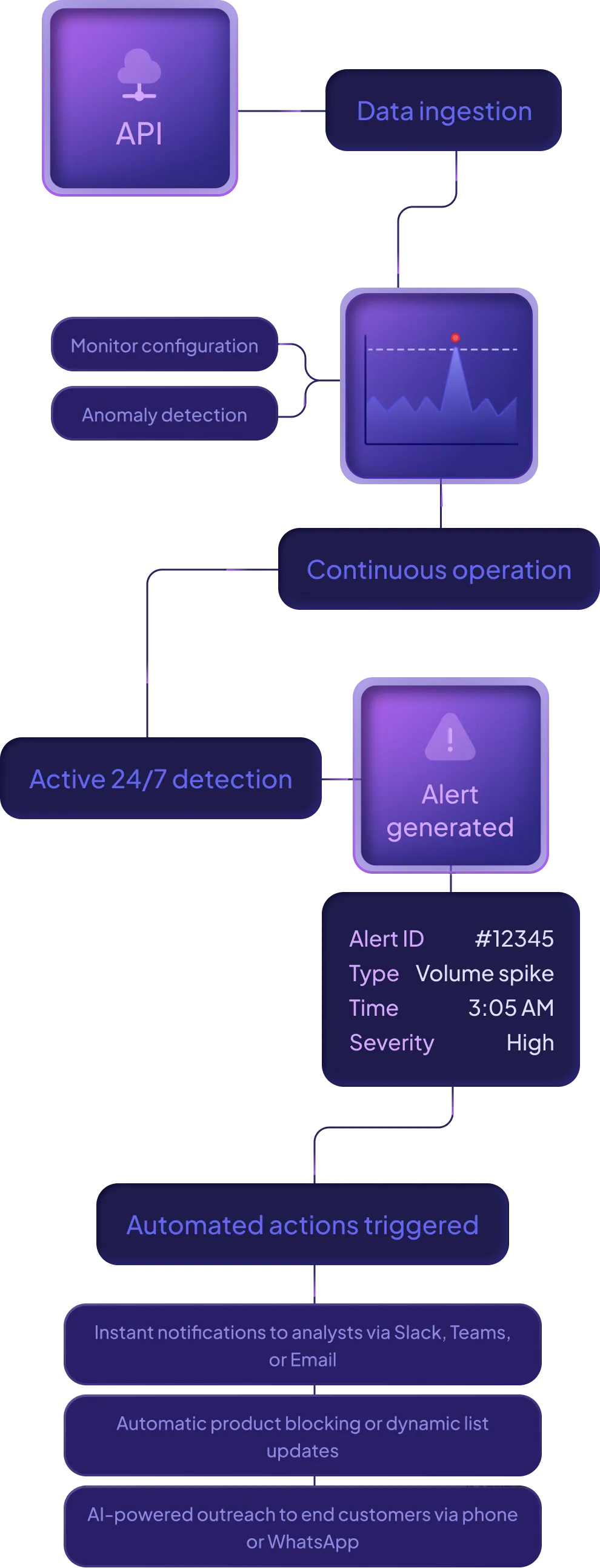 Set up alerts and automated actions for always-on, 24/7 protection, even when your team is offline.